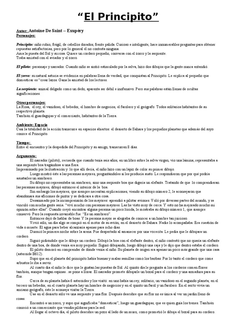 Esta persona mayor es capaz de entenderlo todo, hasta los libros para niños. Un adulto que no se encuentra cmodo con sus contemporneos, y prefiere recorrer el mundo en su … Y también este libro fue escrito por un escritor de libros que se considera popular … Ficha bibliogrfica del libro principito. 99 volumen 1/1 personajes del libro principito el aviador:
